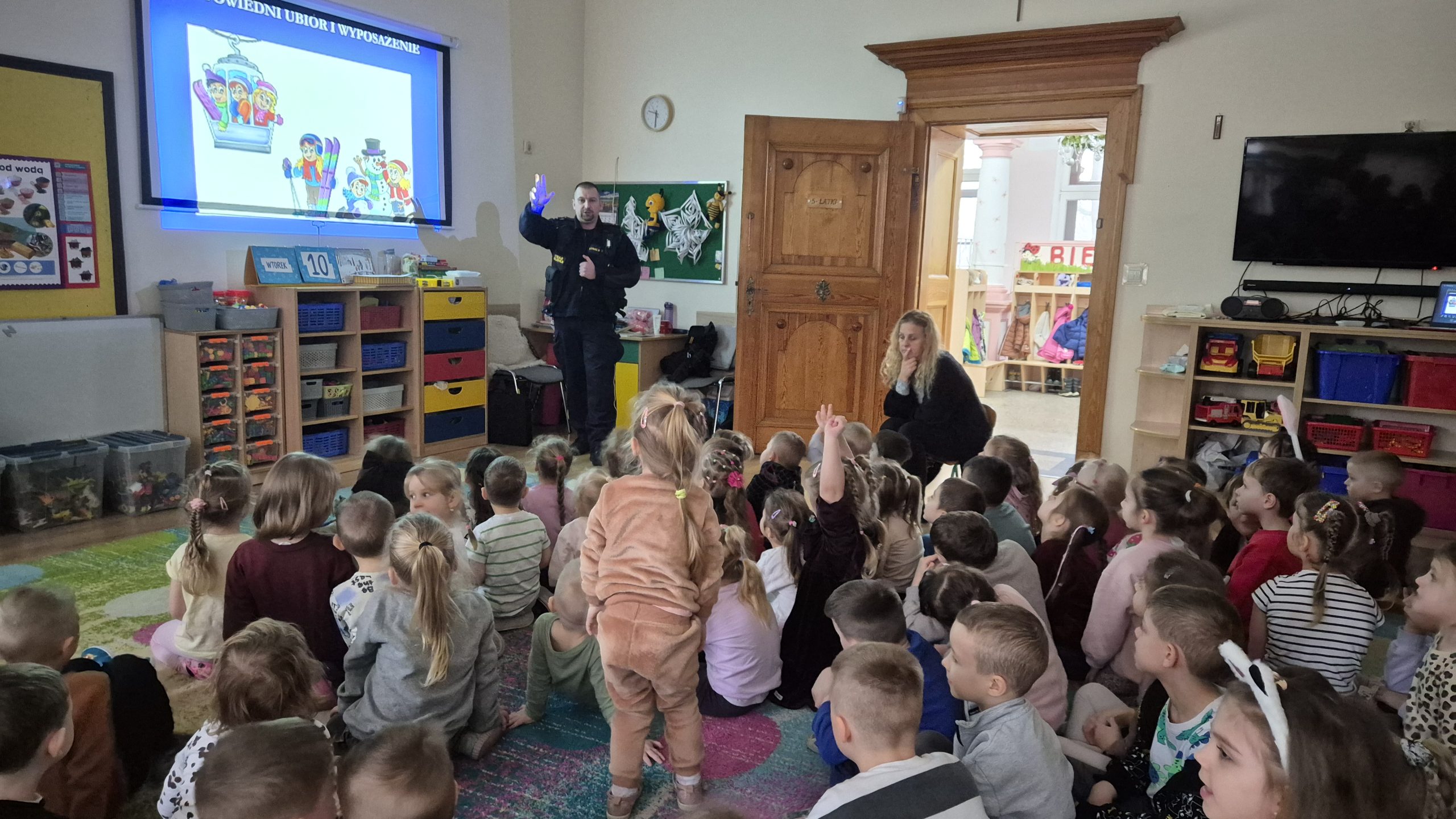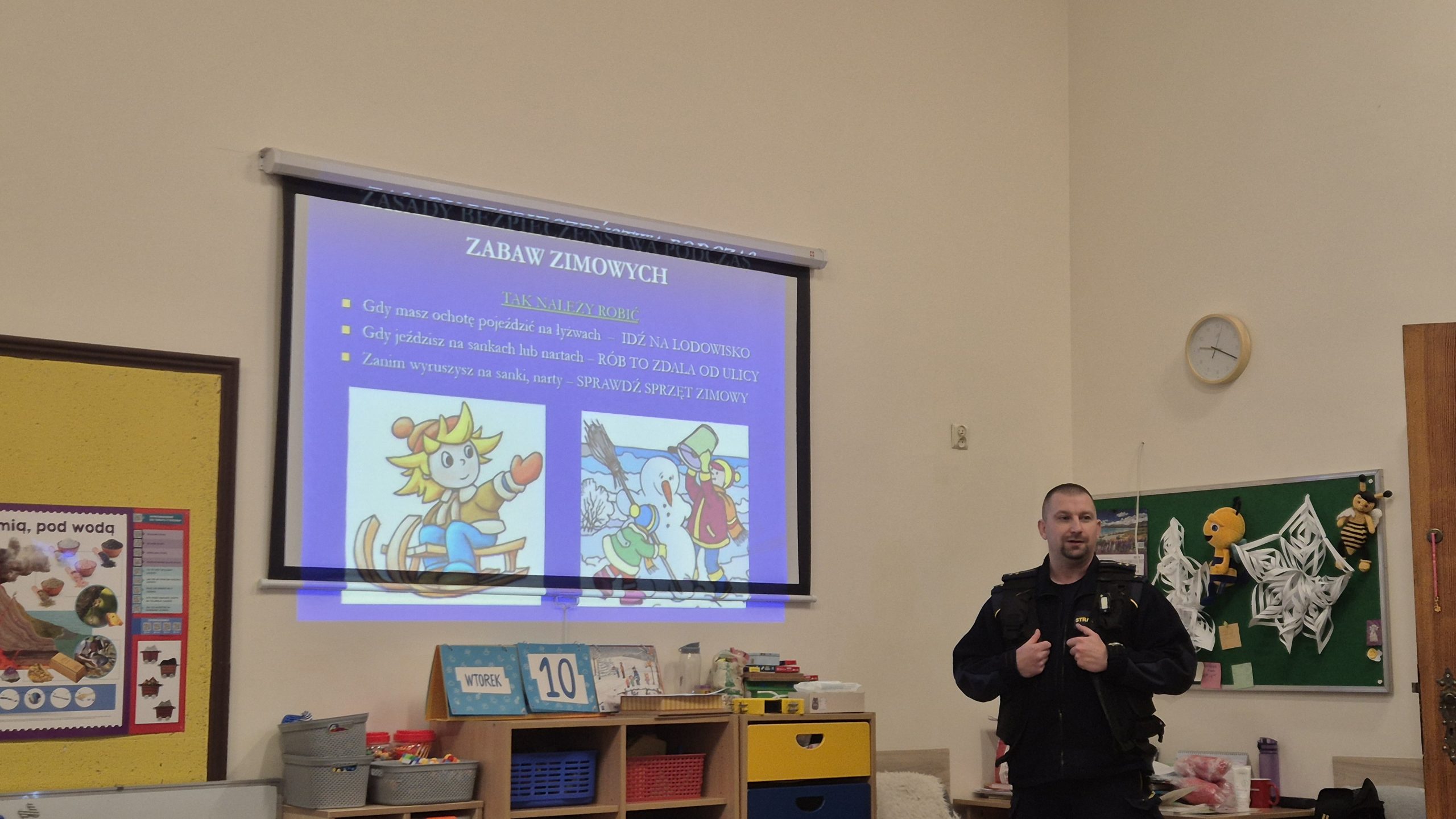 W naszym przedszkolu 10 lutego odbyło się spotkanie z przedstawicielami Straży Miejskiej, którzy przeprowadzili dla dzieci pogadankę na temat bezpiecznych ferii zimowych. Podczas spotkania przedszkolaki dowiedziały się, jak bezpiecznie bawić się na śniegu i lodzie, jak zachowywać się w czasie zimowego wypoczynku oraz jak unikać niebezpiecznych sytuacji.