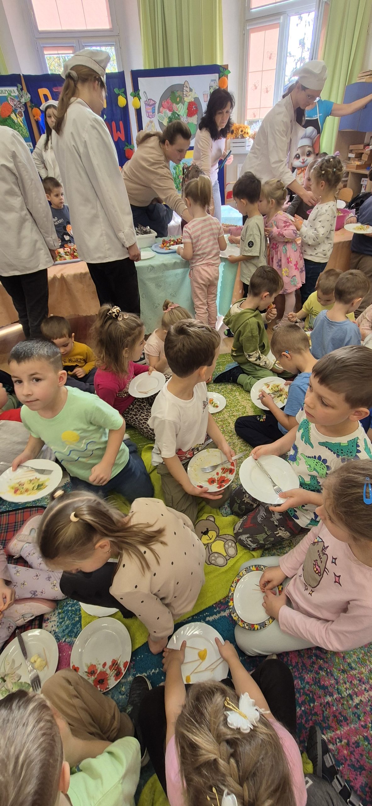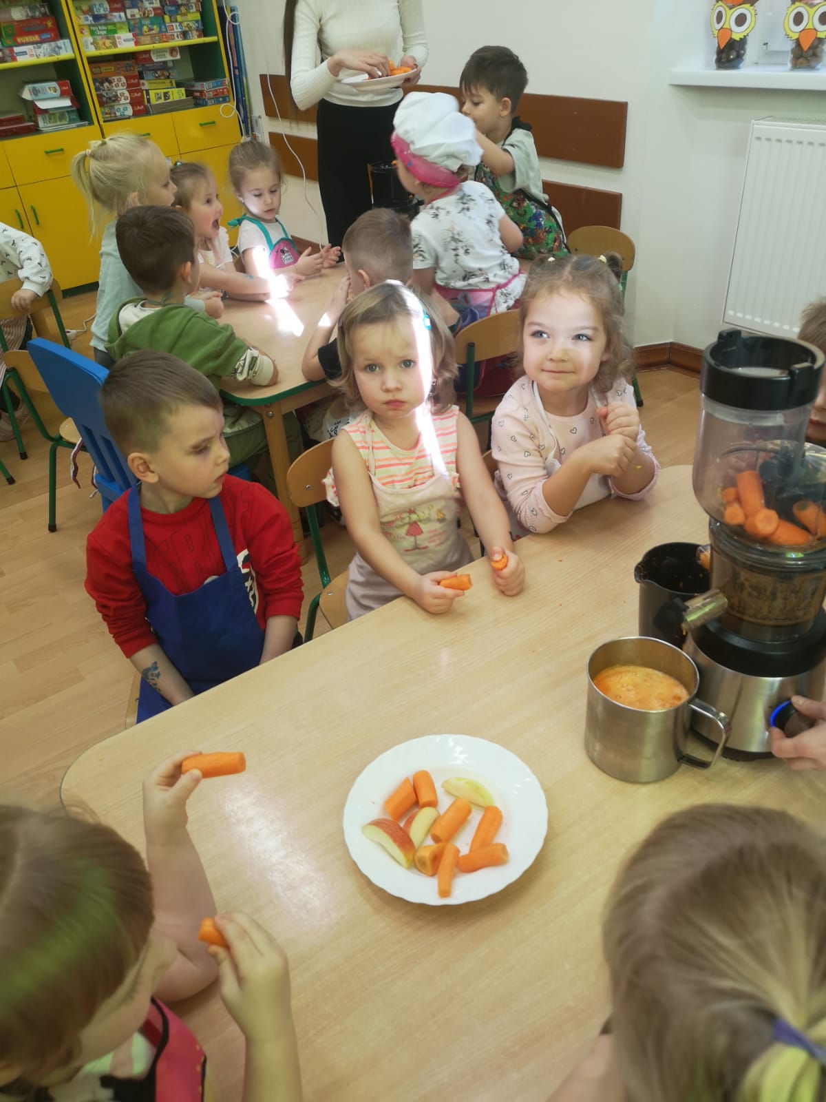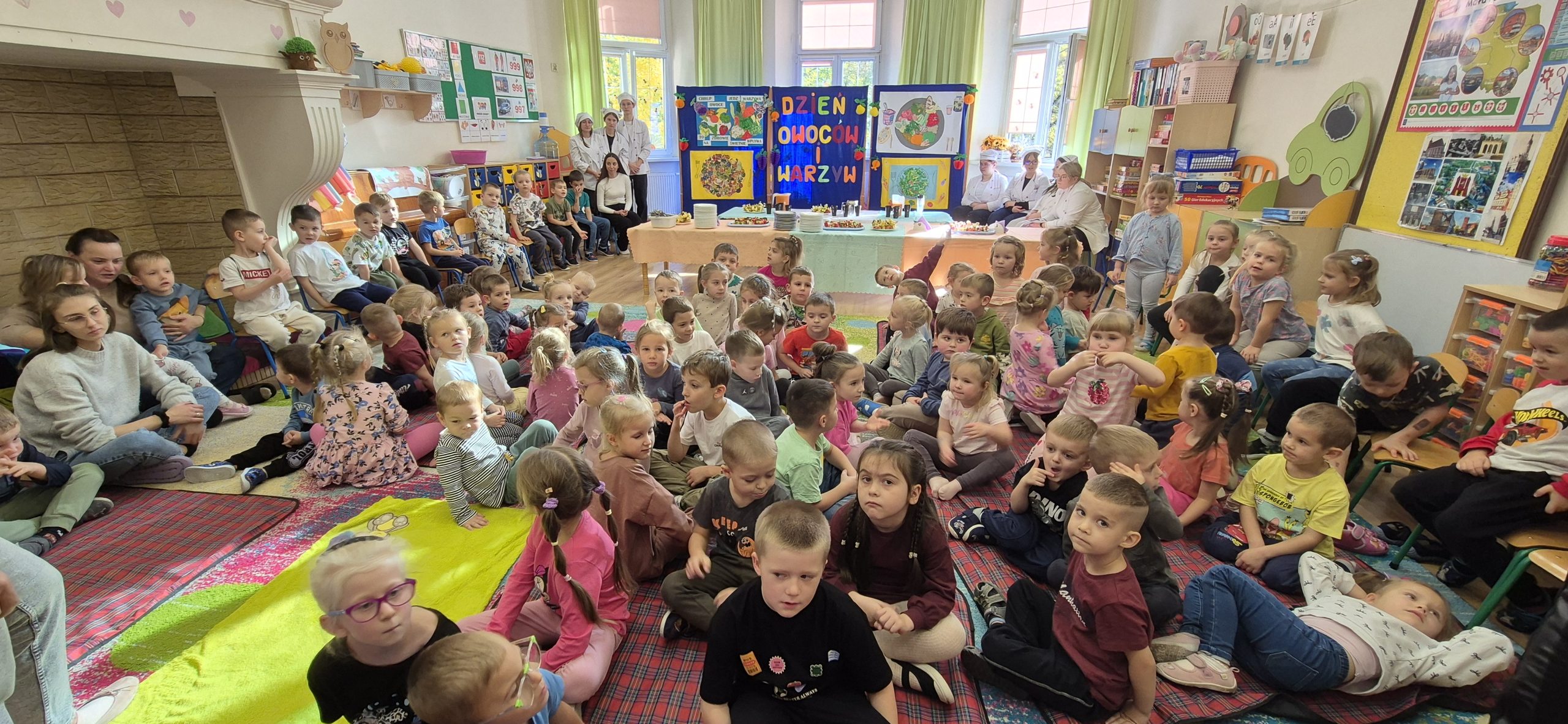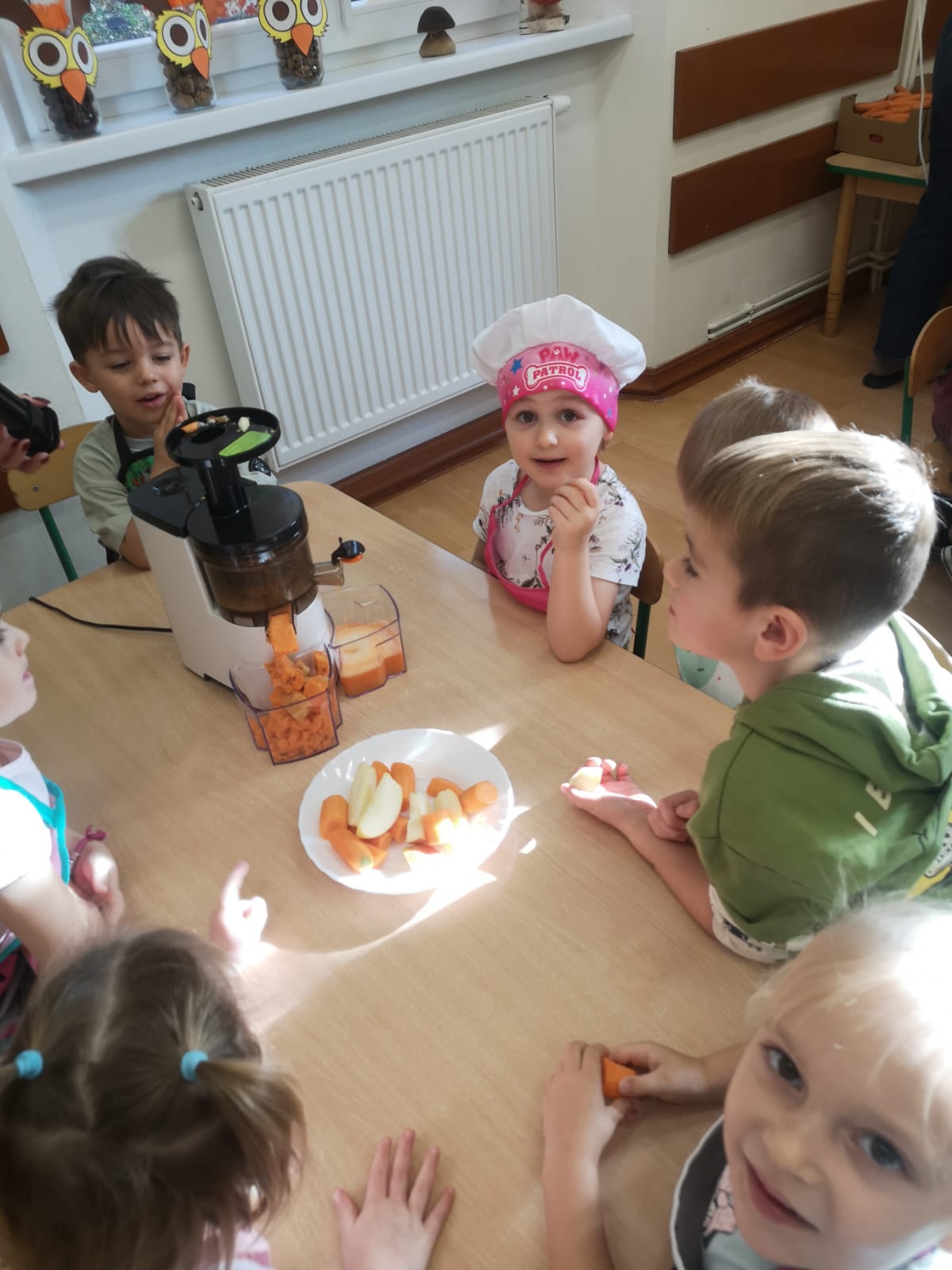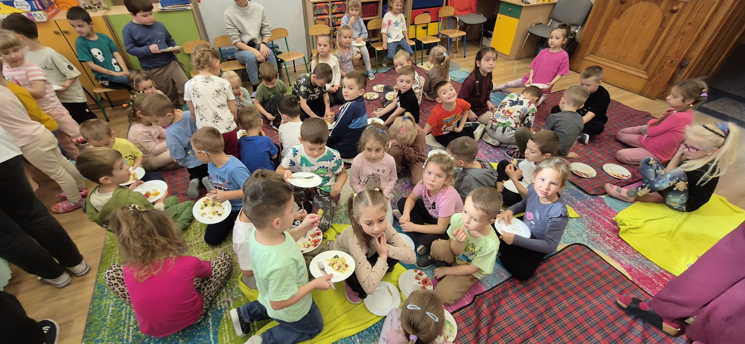 Podczas zajęć rozmawialiśmy o tym, dlaczego warto jeść owoce i warzywa każdego dnia – to one dostarczają nam energii, witamin i pomagają zachować dobre samopoczucie. Dzieci dowiedziały się również, jak ważne są zdrowe nawyki żywieniowe i że sięganie po naturalne produkty to najlepszy sposób na dbanie o swoje zdrowie.