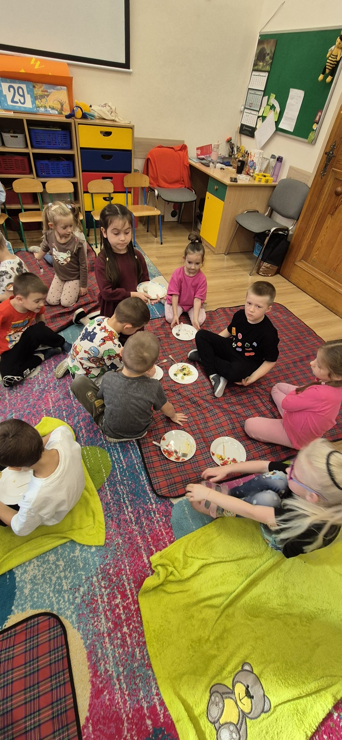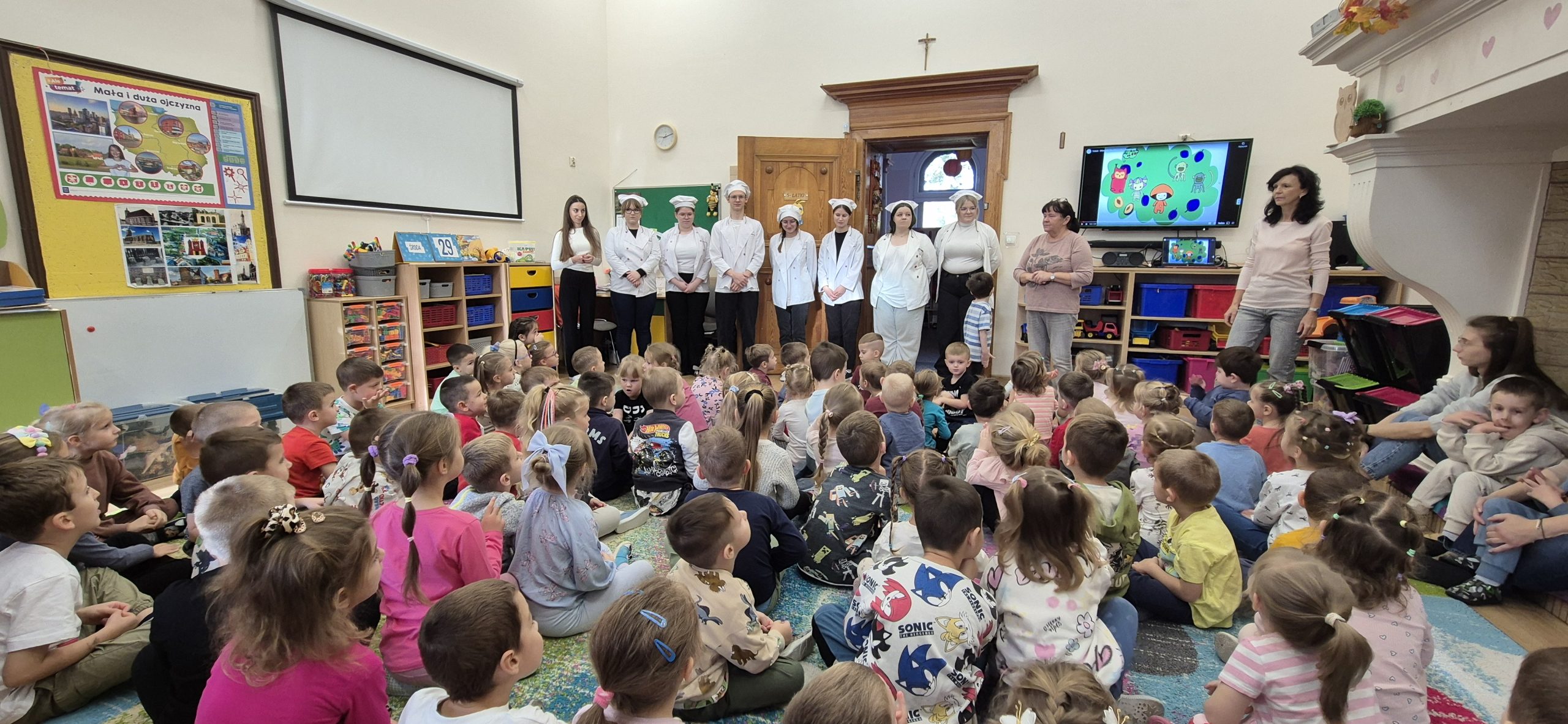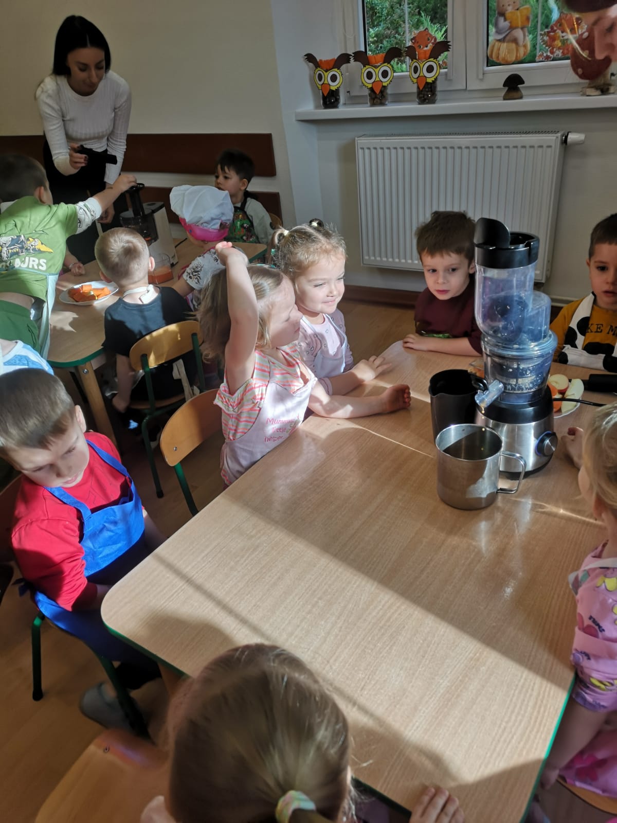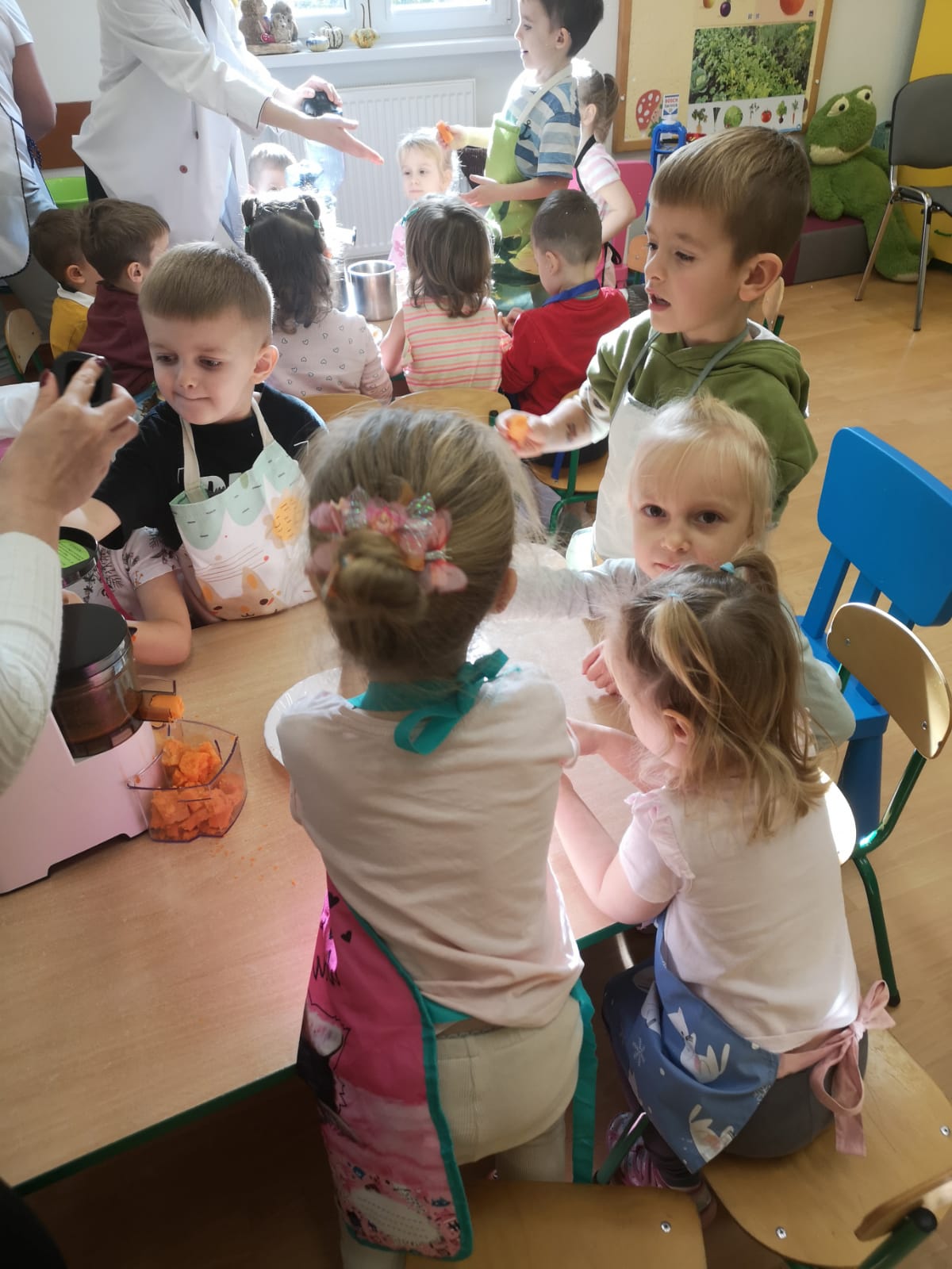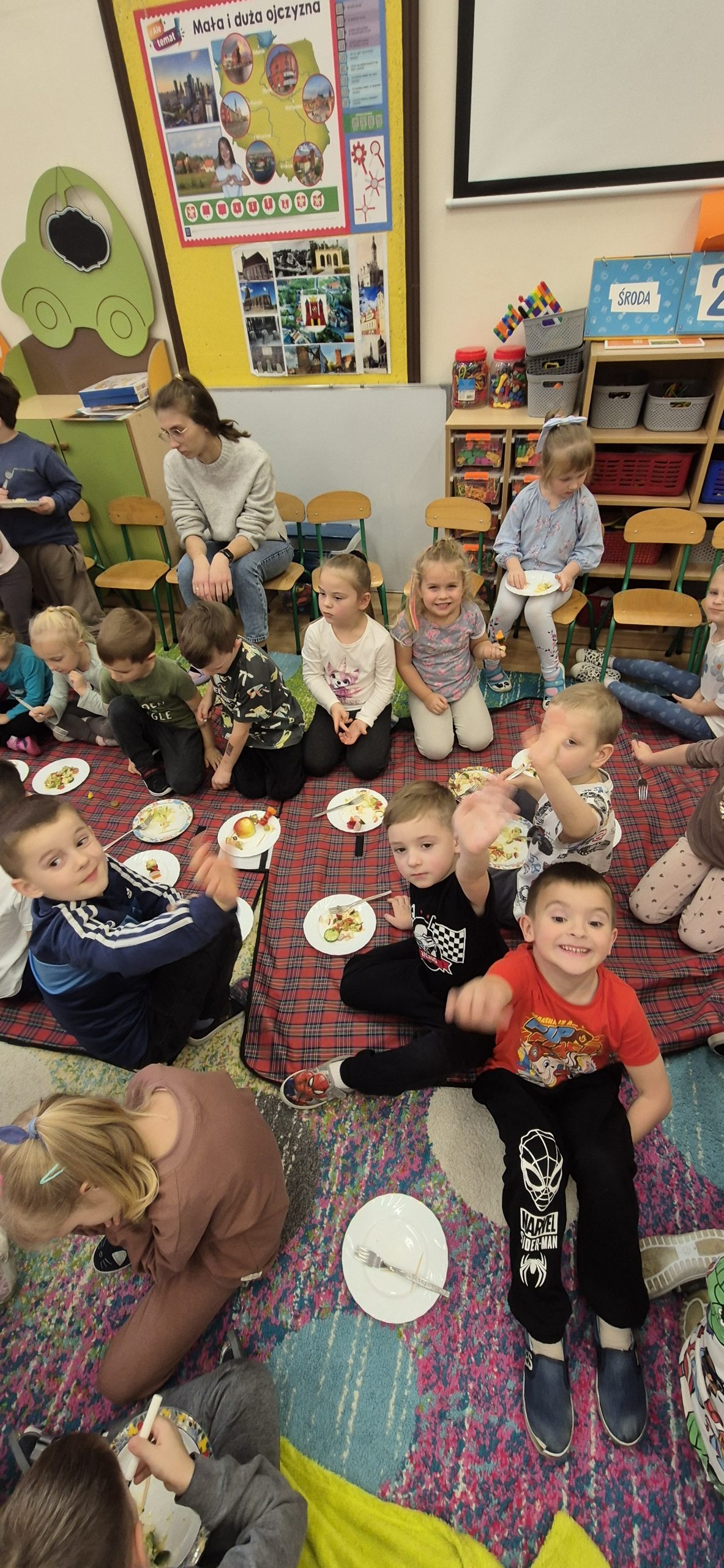 Podczas zajęć rozmawialiśmy o tym, dlaczego warto jeść owoce i warzywa każdego dnia – to one dostarczają nam energii, witamin i pomagają zachować dobre samopoczucie. Dzieci dowiedziały się również, jak ważne są zdrowe nawyki żywieniowe i że sięganie po naturalne produkty to najlepszy sposób na dbanie o swoje zdrowie.