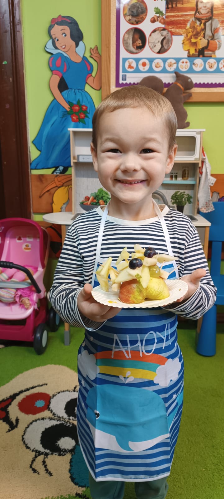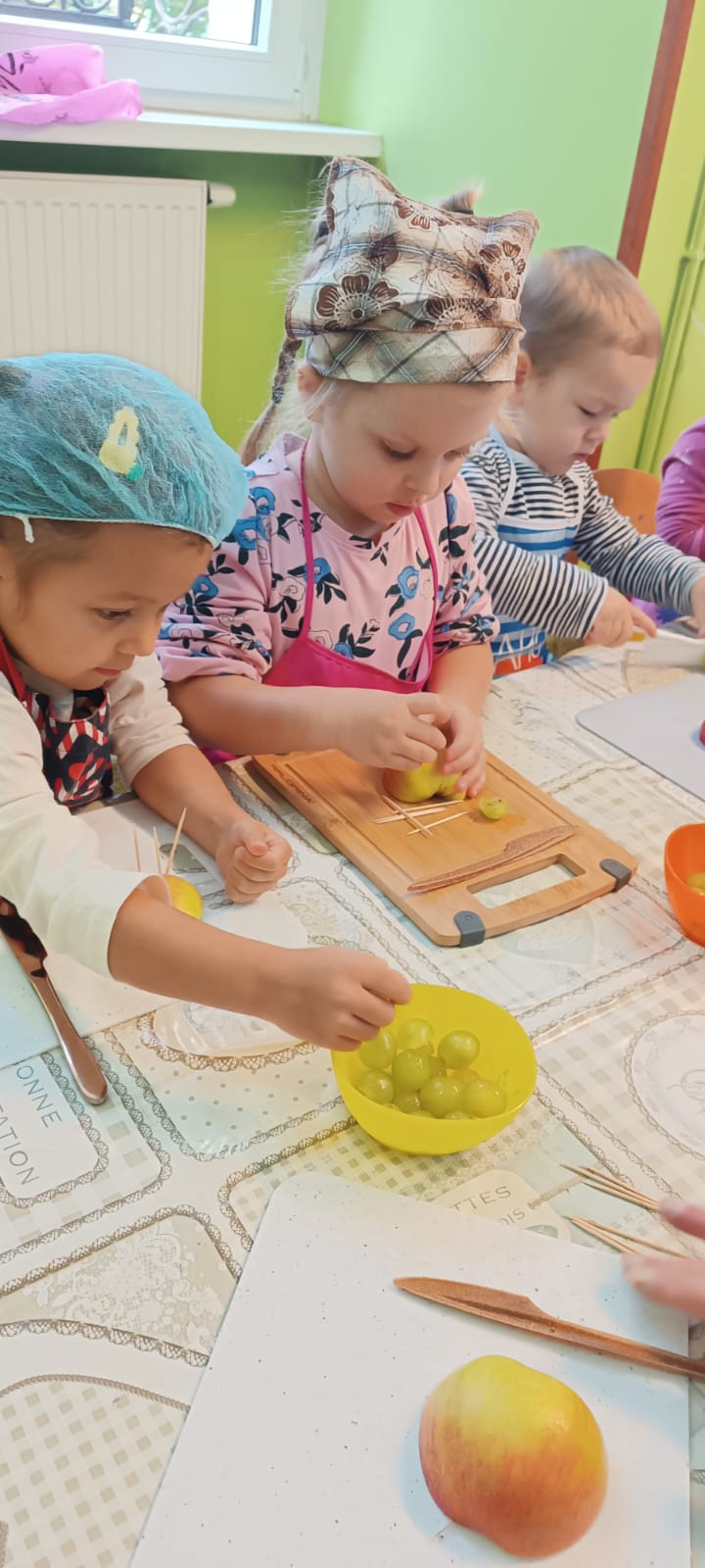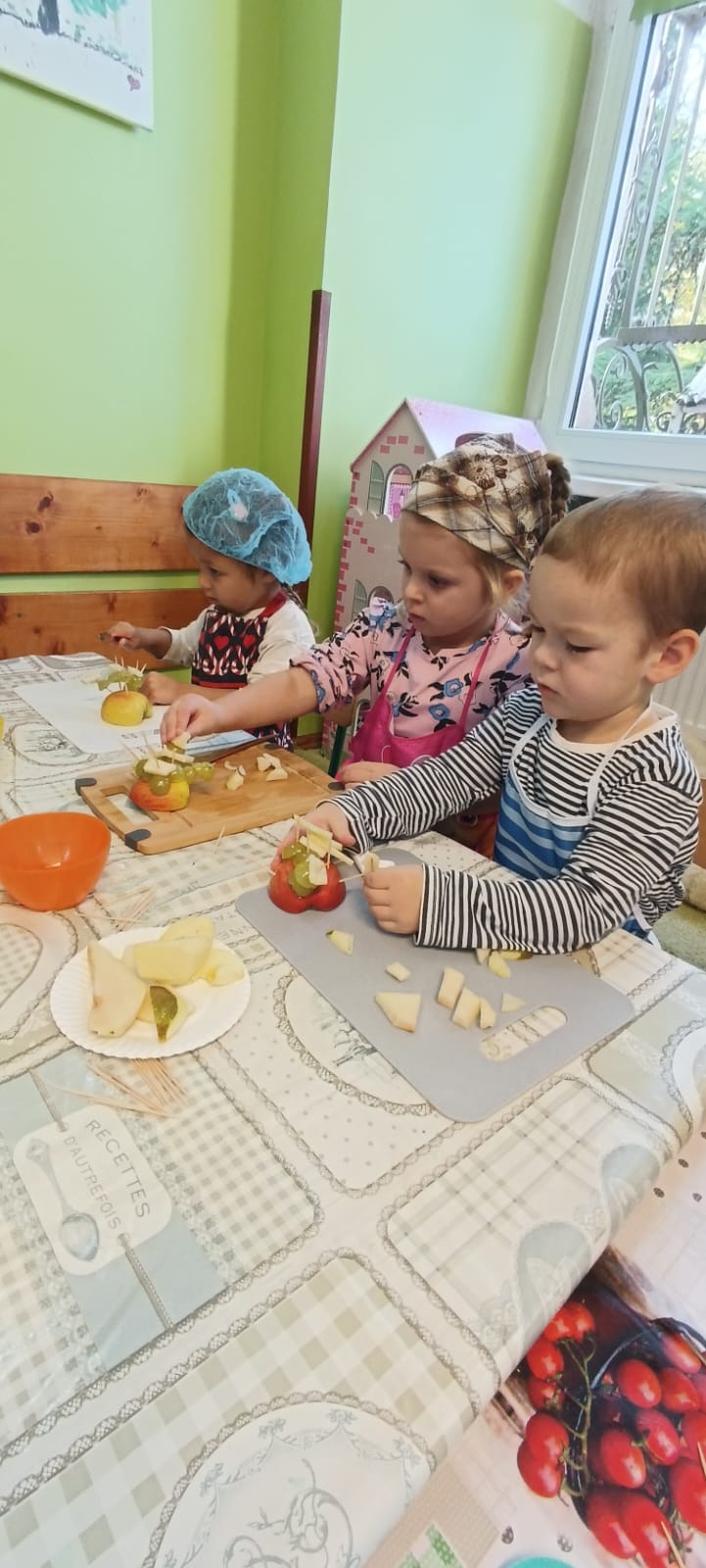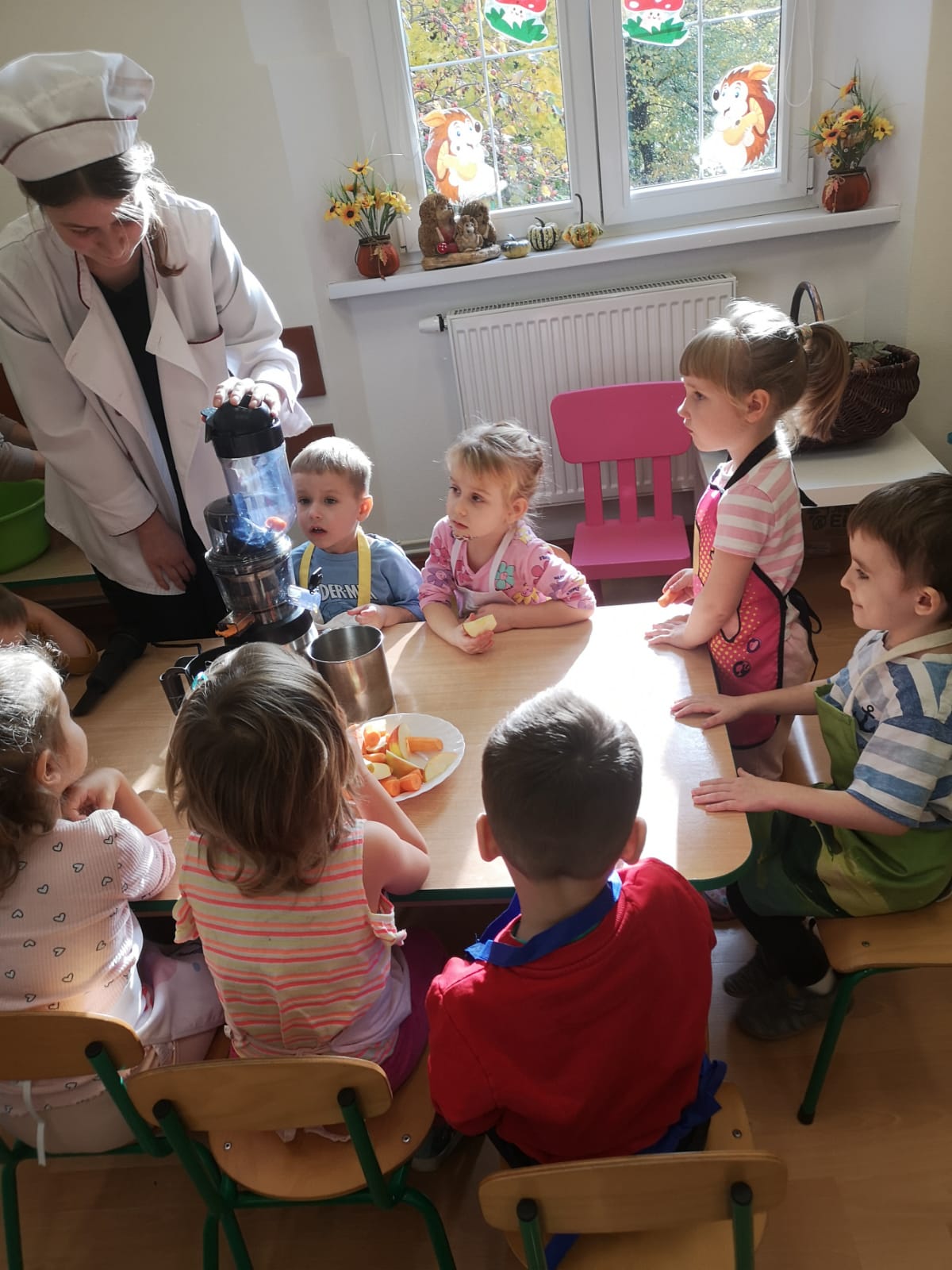 29 października w naszym przedszkolu obchodziliśmy Dzień Owoców i Warzyw – pełen kolorów, smaków i witamin! Dzieci uczestniczyły w warsztatach kulinarnych, podczas których przygotowywały warzywne owocowe koreczki, sałatkę warzywną oraz świeżo wyciskane soki. Każdy przedszkolak mógł spróbować swoich sił w krojeniu, mieszaniu i komponowaniu zdrowych przysmaków.