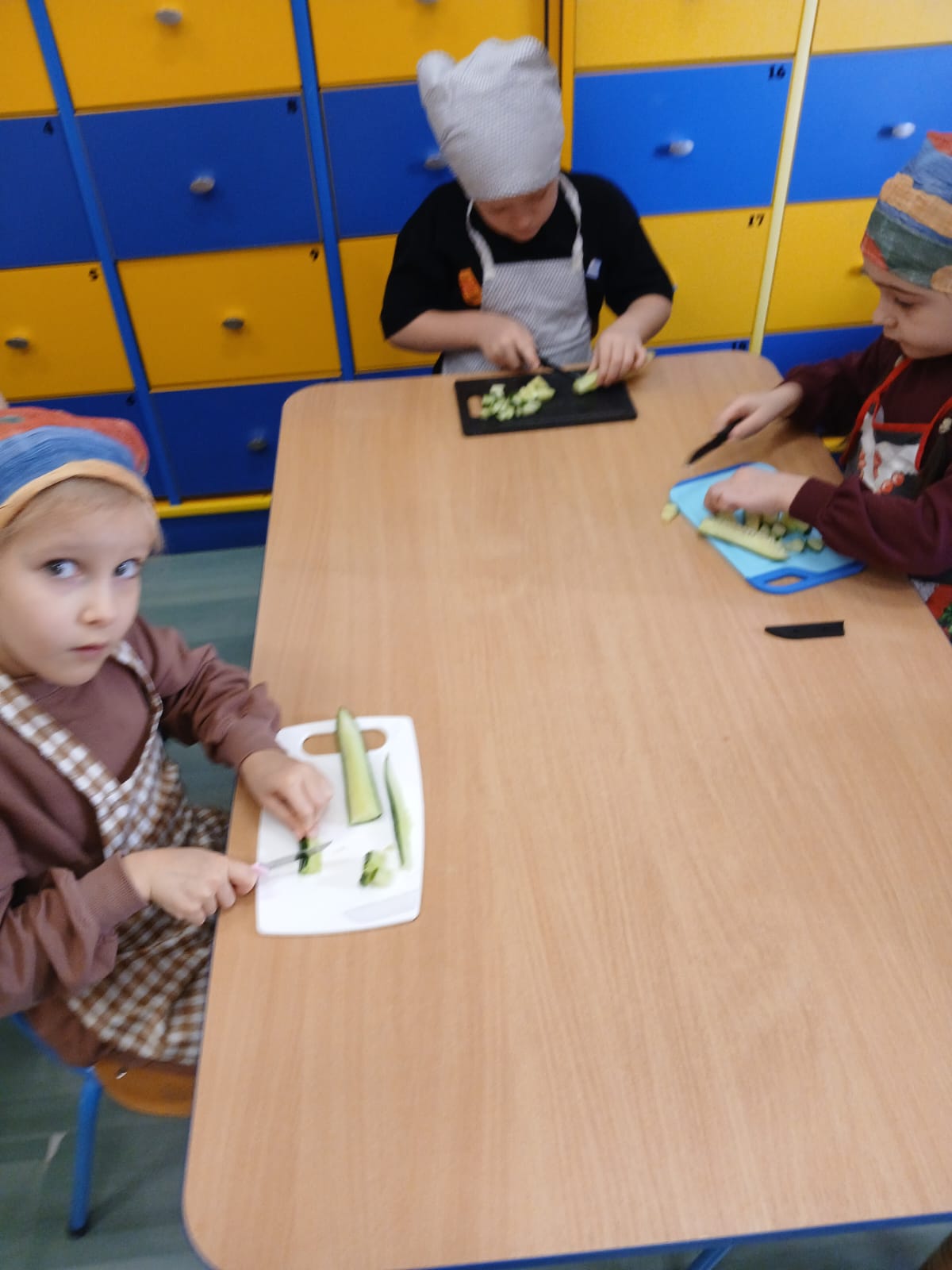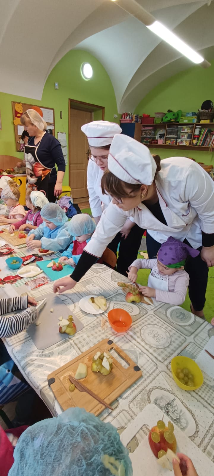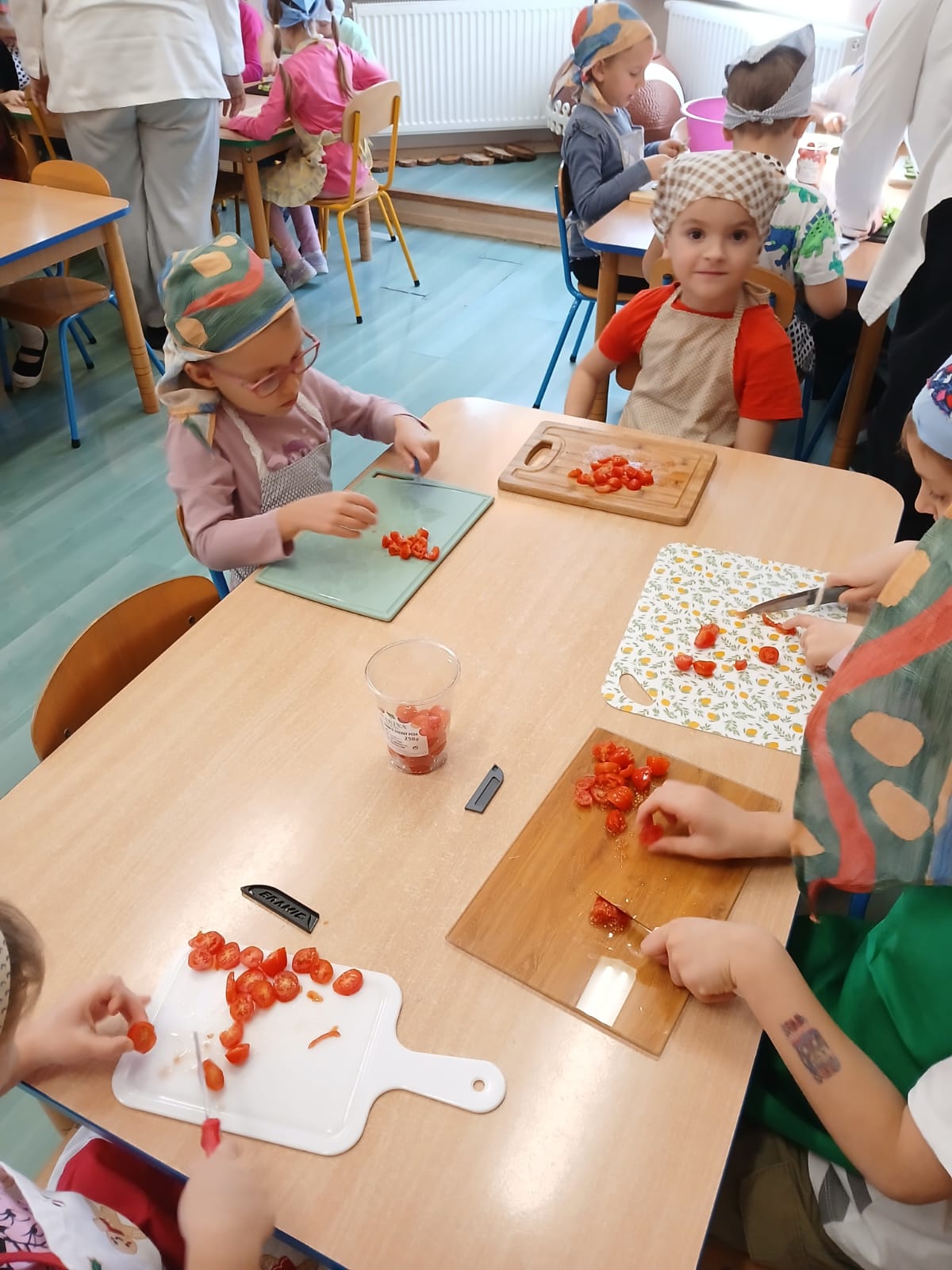Mieliśmy również w tym dniu wyjątkowych gości – uczniów z Europejskiego Centrum Kształcenia Zawodowego i Ustawicznego w Gubinie. Uczniowie pomagali naszym przedszkolakom w przygotowywaniu kulinarnych przysmaków.