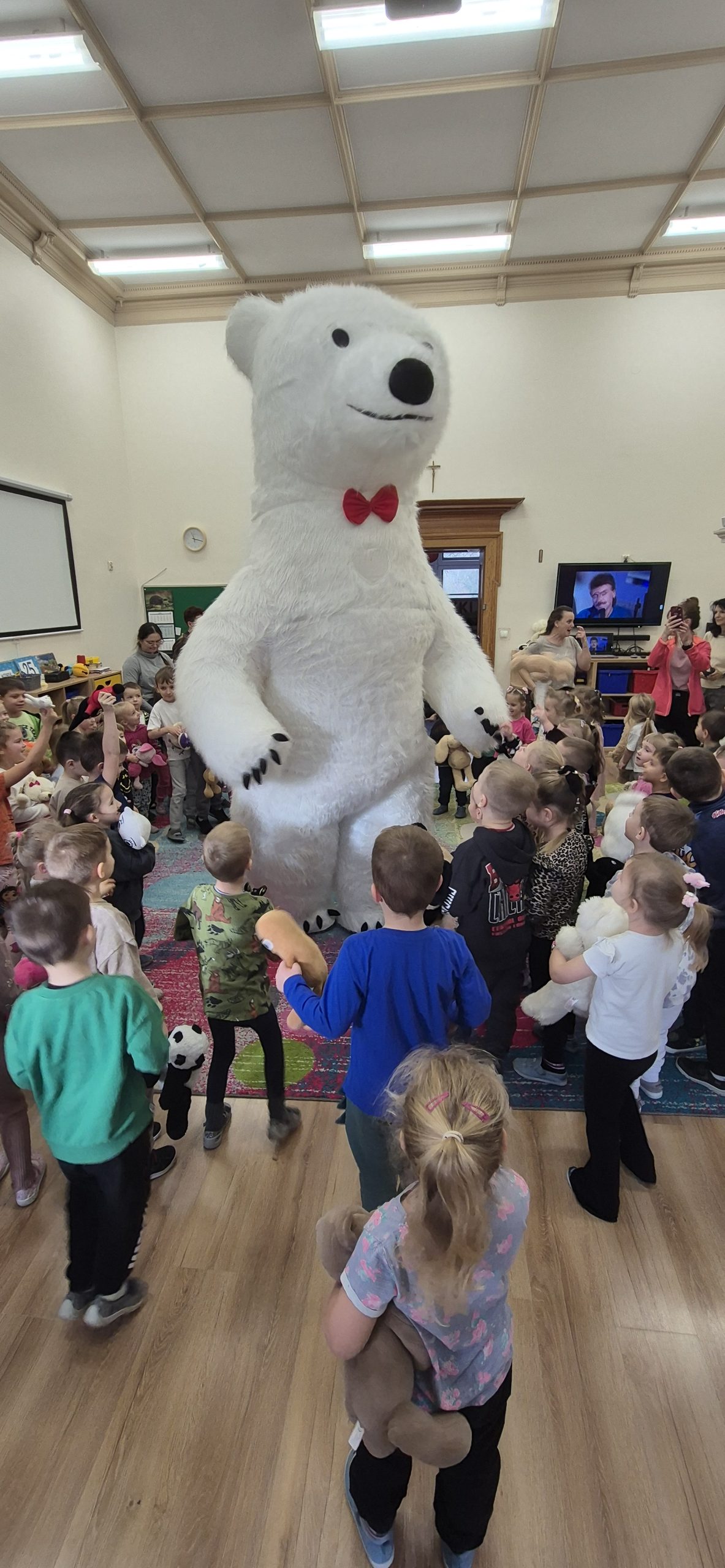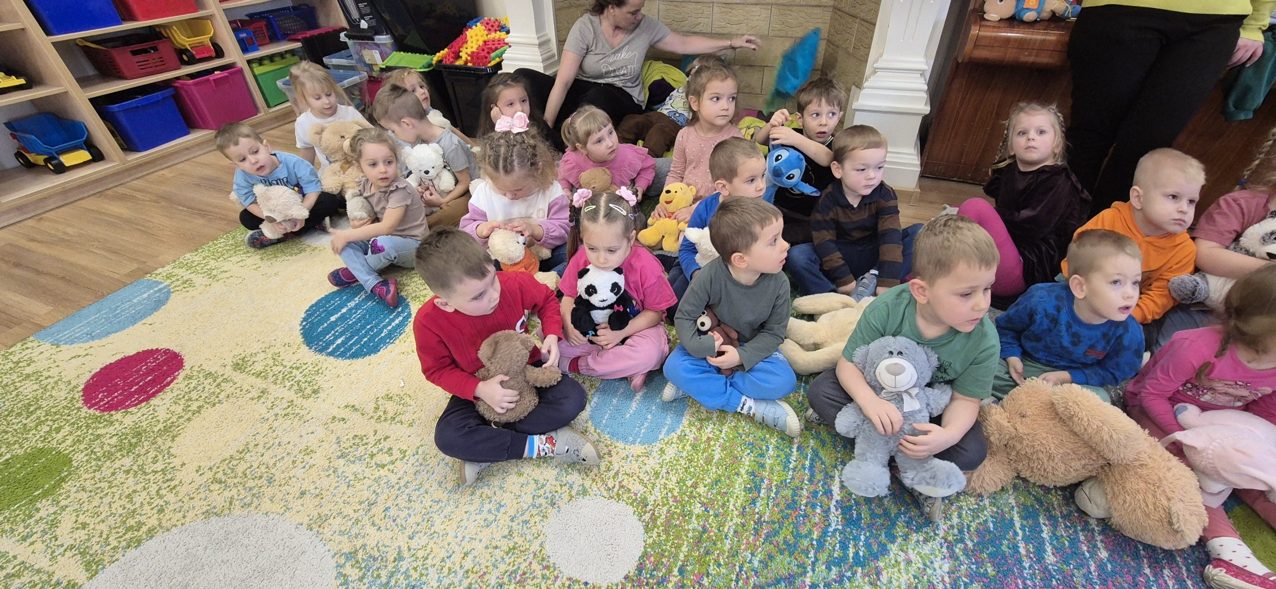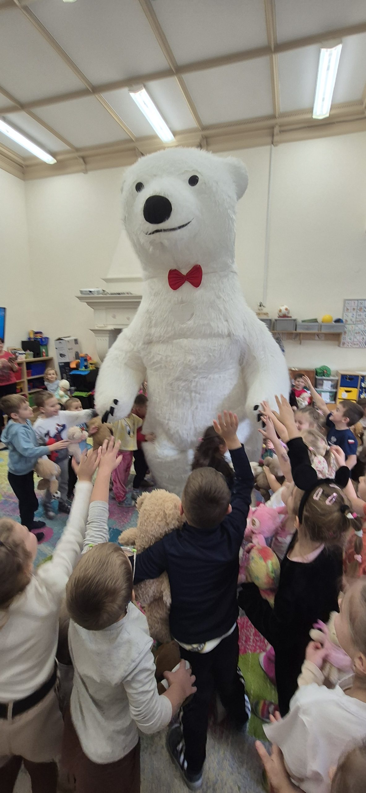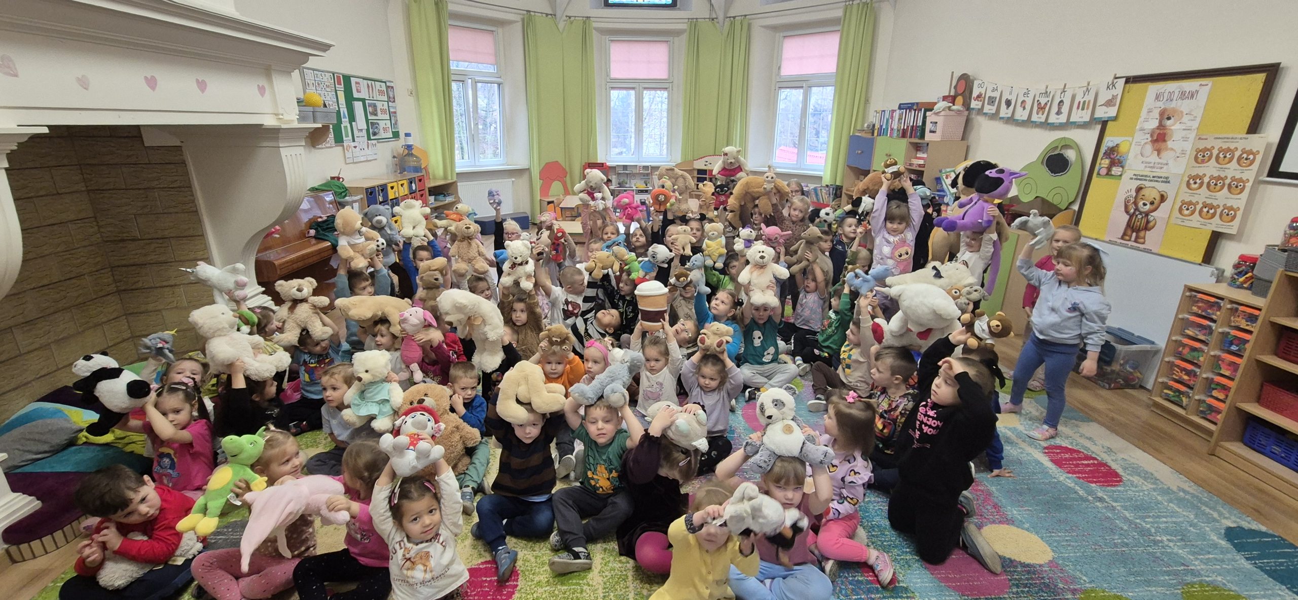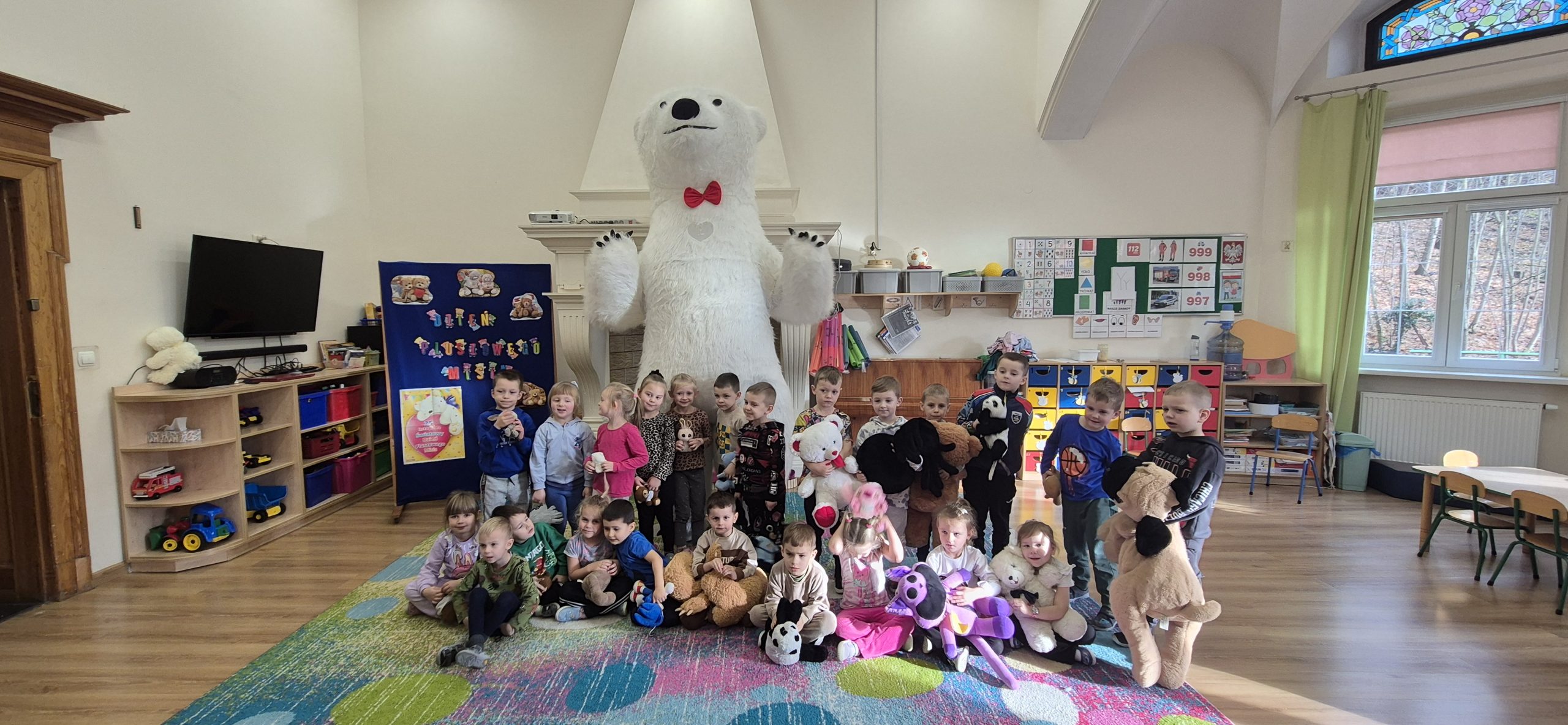 W naszym przedszkolu obchodziliśmy radosny Dzień Pluszowego Misia, który przypada 25 listopada – w rocznicę powstania pierwszego pluszowego misia. Inspiracją była historia z 1902 roku, kiedy prezydent USA Theodore Roosevelt odmówił zastrzelenia młodego niedźwiadka, co doprowadziło do powstania zabawki „Teddy Bear”.  Dzieci przyniosły swoje ukochane misie i inne pluszowe zabawki, które towarzyszyły im przez cały dzień. Przedszkolaki bawiły się przy wesołej „misiowej” muzyce, brały udział w zabawach ruchowych oraz wykonywały prace plastyczne związane z tematyką święta. Niezwykłą atrakcją była wizyta dużego dmuchanego misia, który wywołał na twarzach dzieci mnóstwo uśmiechu i zachwytu. To był dzień pełen radości, zabawy i misiowych przygód.