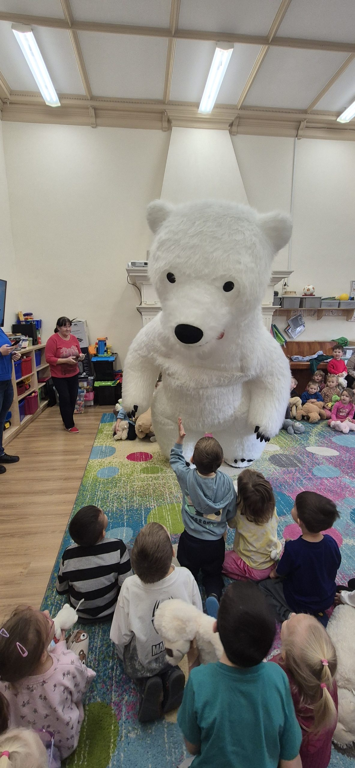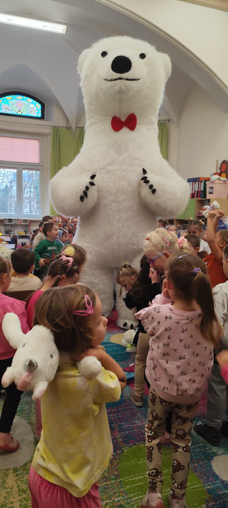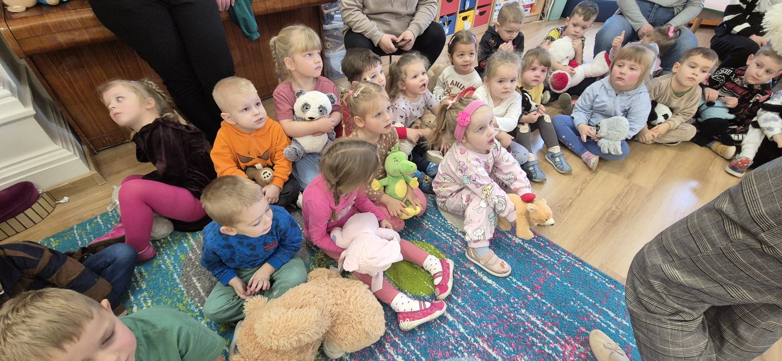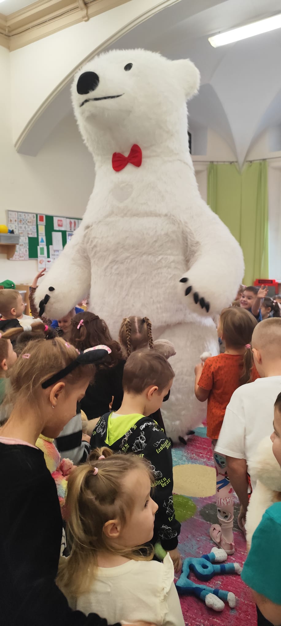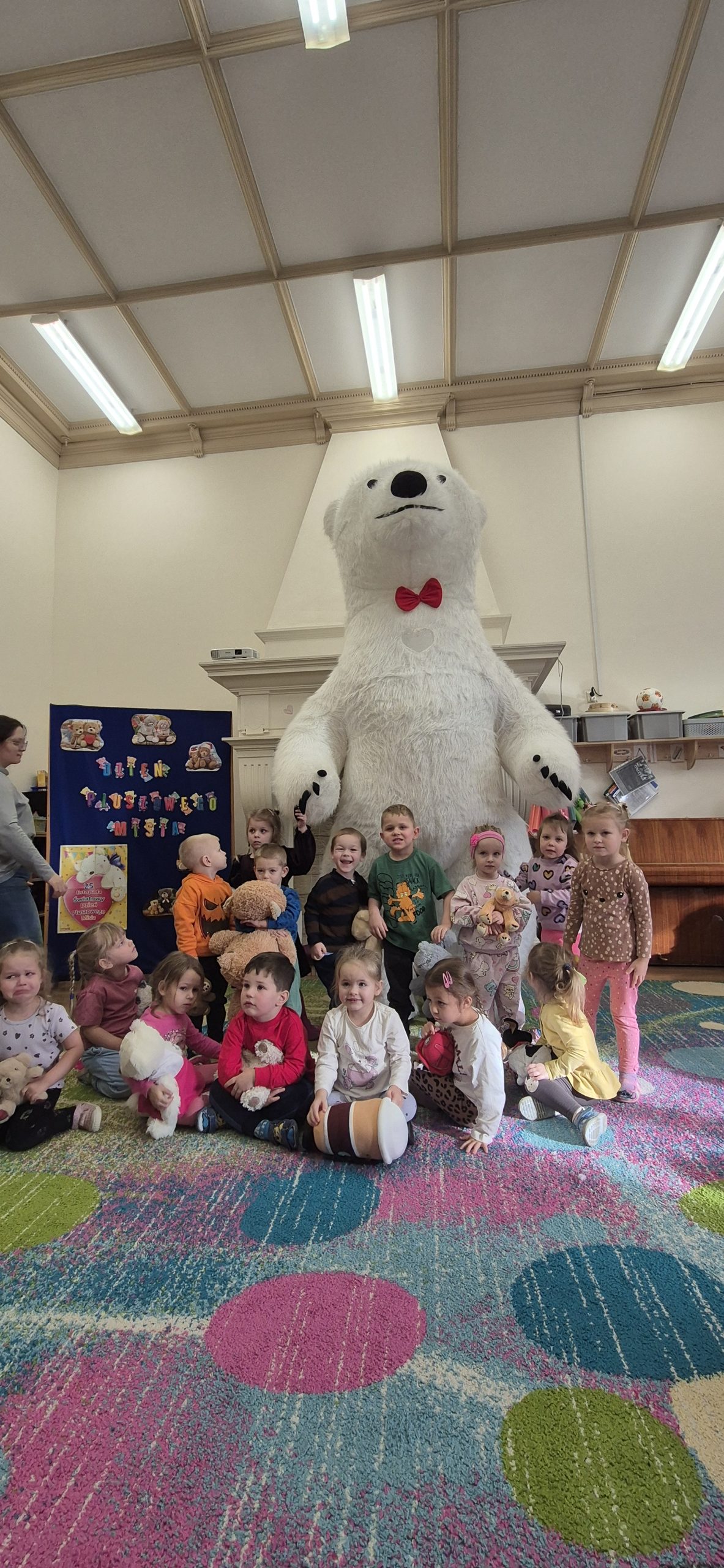 W naszym przedszkolu obchodziliśmy radosny Dzień Pluszowego Misia, który przypada 25 listopada – w rocznicę powstania pierwszego pluszowego misia. Inspiracją była historia z 1902 roku, kiedy prezydent USA Theodore Roosevelt odmówił zastrzelenia młodego niedźwiadka, co doprowadziło do powstania zabawki „Teddy Bear”.  Dzieci przyniosły swoje ukochane misie i inne pluszowe zabawki, które towarzyszyły im przez cały dzień. Przedszkolaki bawiły się przy wesołej „misiowej” muzyce, brały udział w zabawach ruchowych oraz wykonywały prace plastyczne związane z tematyką święta. Niezwykłą atrakcją była wizyta dużego dmuchanego misia, który wywołał na twarzach dzieci mnóstwo uśmiechu i zachwytu. To był dzień pełen radości, zabawy i misiowych przygód.
