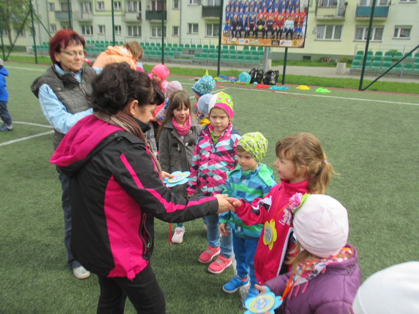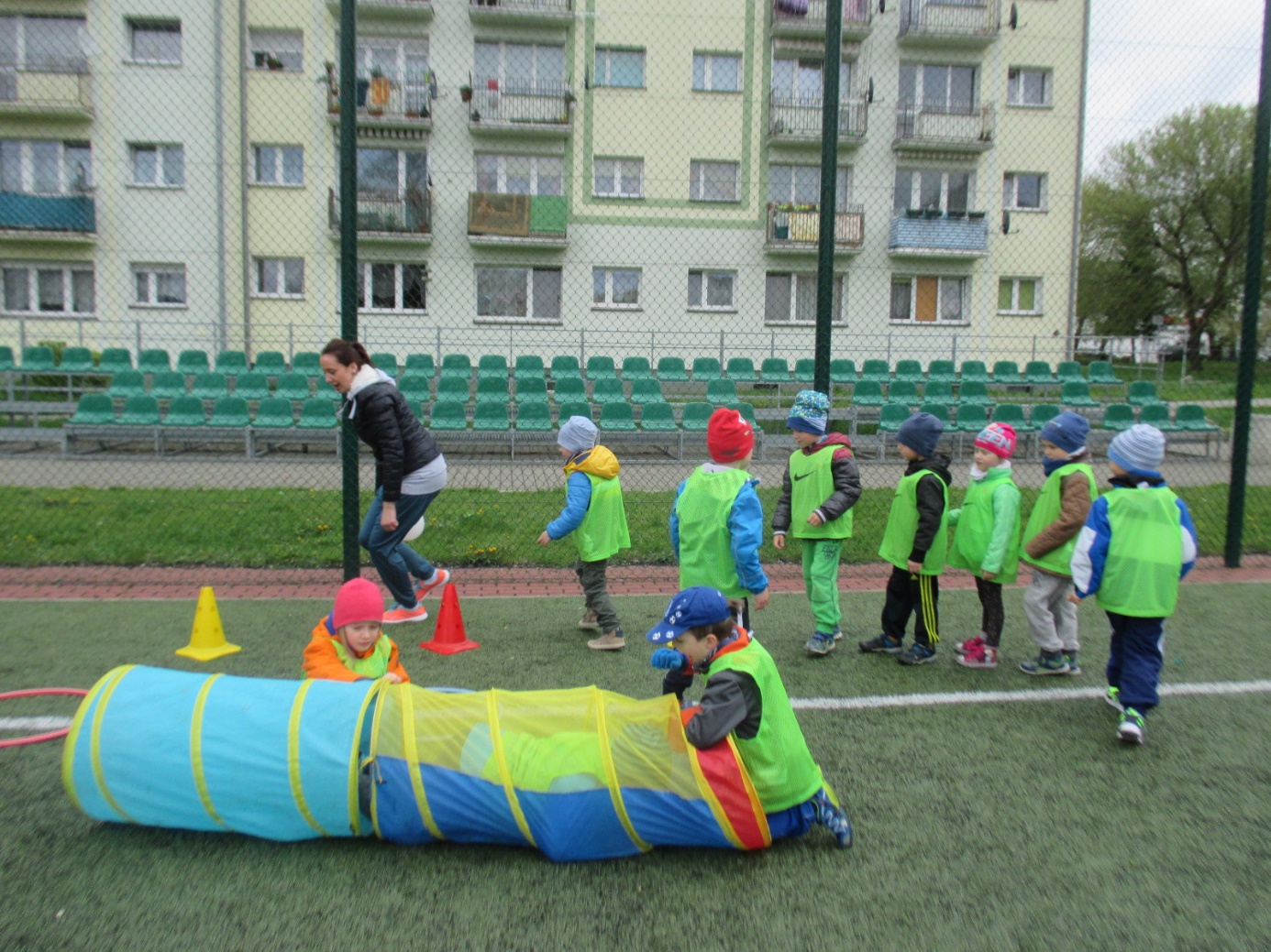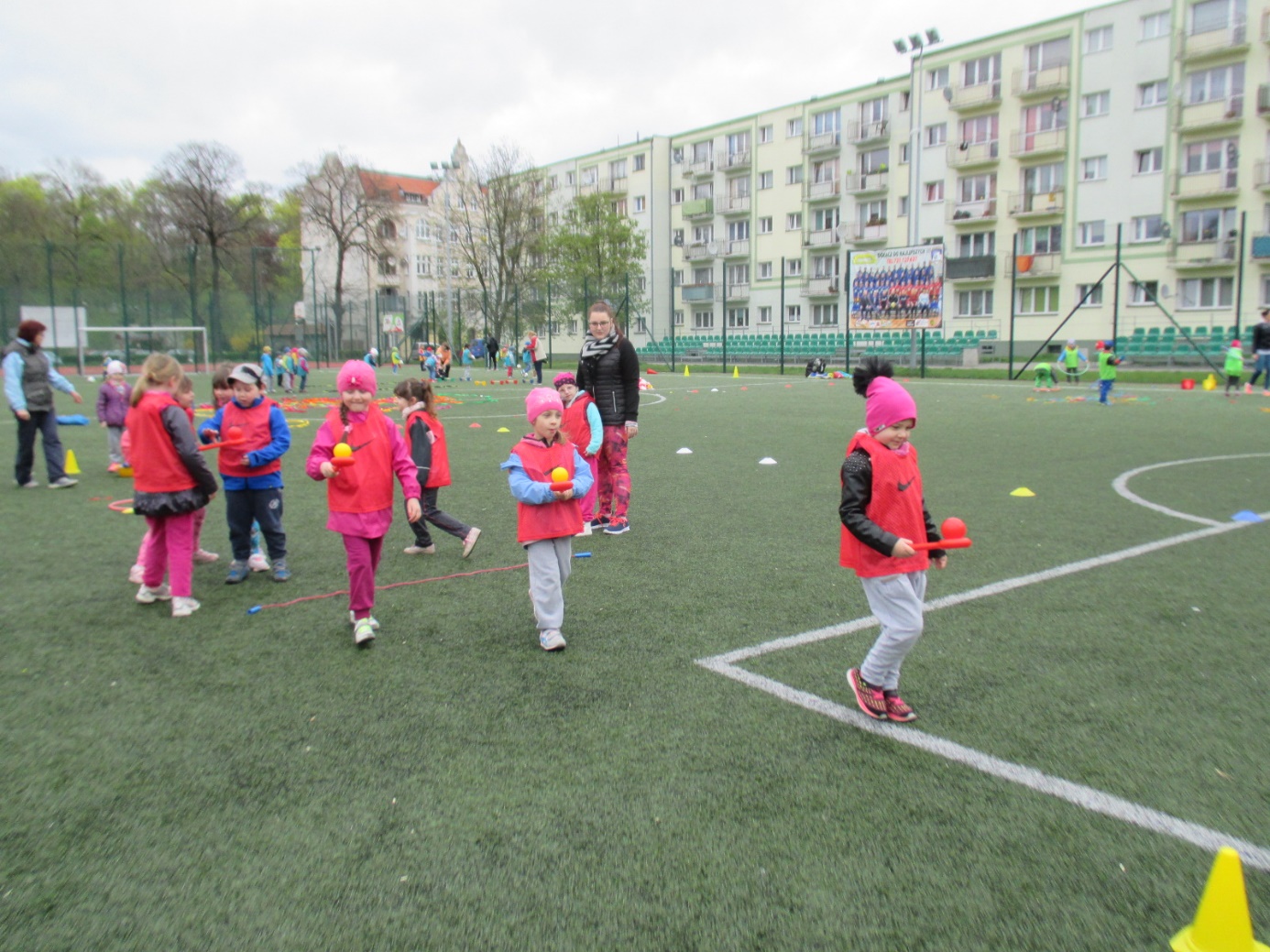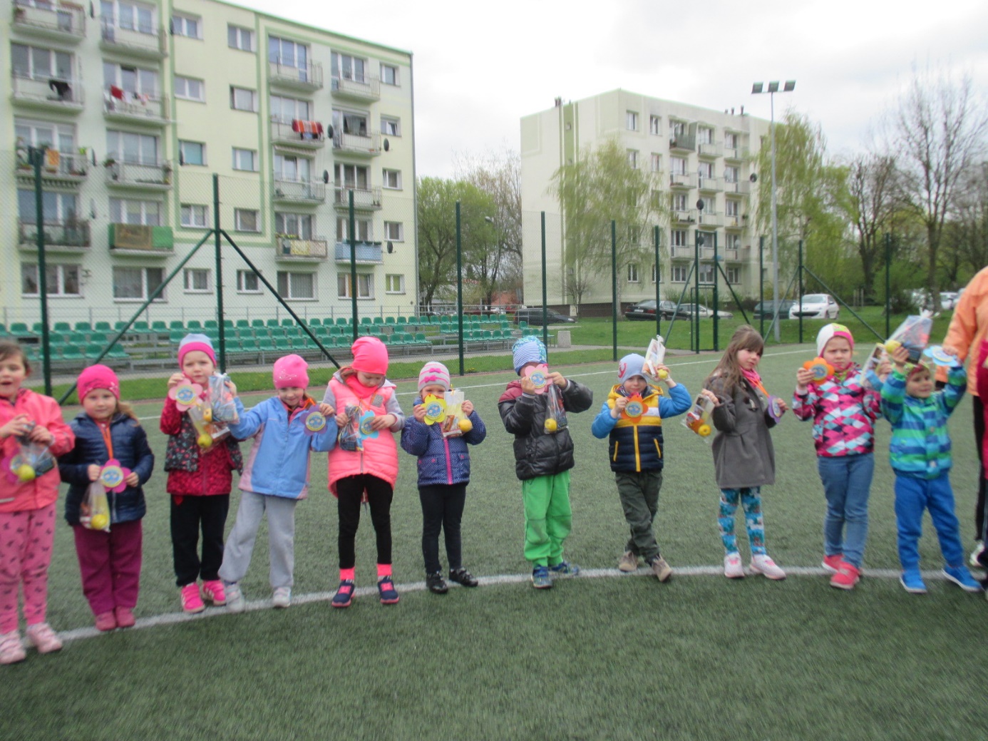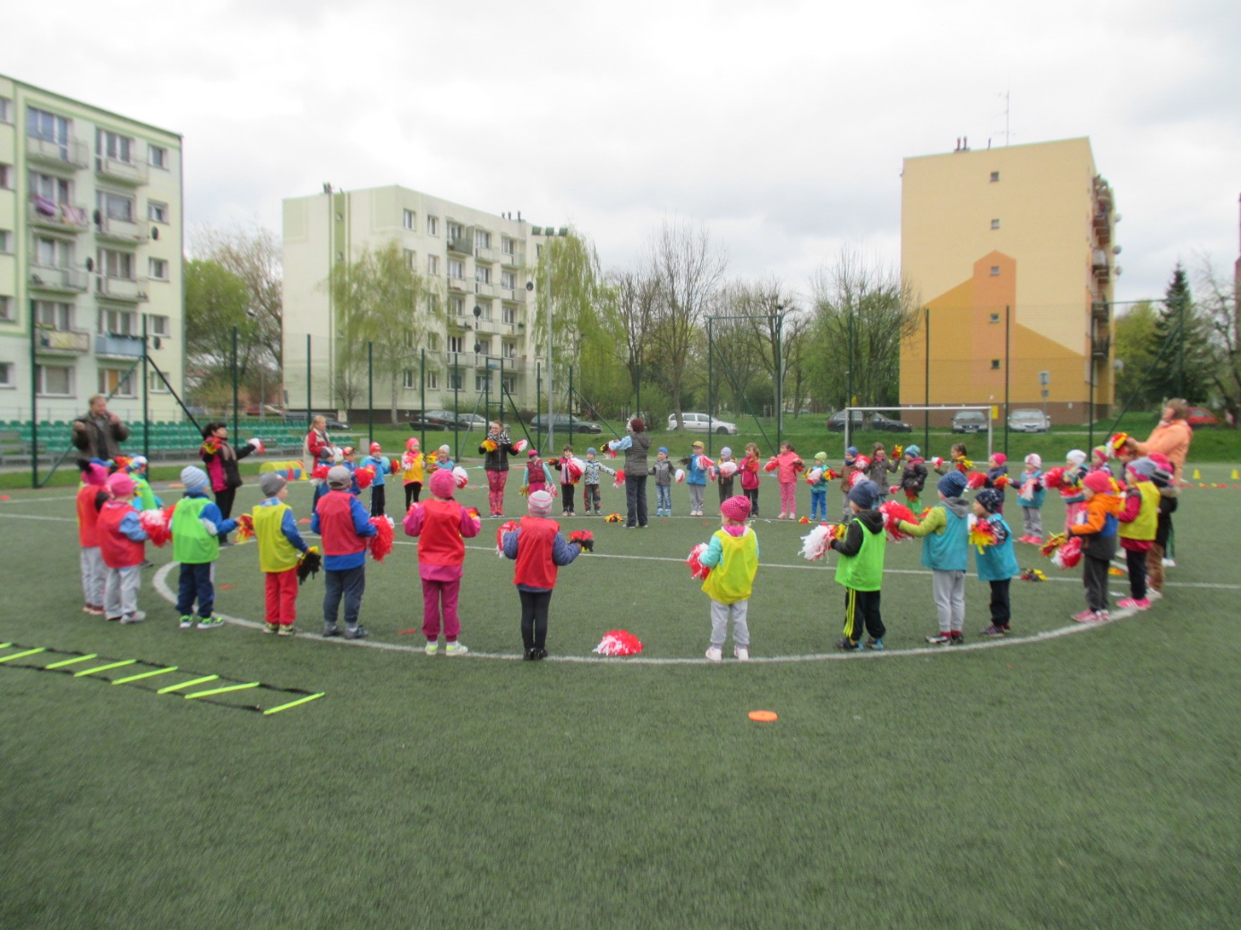 Gubińskie Przedszkole Miejskie Nr 1 już od kilku lat współpracuje z placówką przedszkolną „Regenbogen” z Guben. Przedszkolaki spotykają się wspólnie podczas różnych okoliczności. Tym razem dzieci 5-letnie zaprosiły swoich rówieśników z Przedszkola „Regenbogen” z Guben do wspólnych sportowych zmagań. Spotkanie odbyło się w dniu 20.04.2016 r. na „Boisku „Orlik” przy ulicy Roosevelta. Celem wspólnego spotkania dzieci polskich i niemieckich była integracja przedszkolaków przez wspólną zabawę, wspomaganie rozwoju fizycznego poprzez udział w poszczególnych konkurencjach sportowych oraz kształtowanie formy rywalizacji sportowej z zachowaniem zasad fair-play. Spotkanie rozpoczęły zabawy integracyjne w dużym kręgu z wykorzystaniem pomponów w barwach Polski i Niemiec oraz kolorowych wstążek. To było pełne atrakcji przedpołudnie i południe, bo każdy mógł spróbować swoich sił w różnych konkurencjach sportowych. Wszystkie dzieci zostały podzielone na 4 polsko-niemieckie grupy oznaczone koszulkami w kolorze czerwonym, zielonym, żółtym i niebieskim. Nad całością przebiegu sportowych zmagań czuwał m.in. trener-instruktor sportowy z Miejskiego Ośrodka Sportu Pan Patryk Sobolewski, który przeprowadził z dziećmi „mini” mecze piłkarskie. Ponadto przedszkolaki brały udział w przygotowanych konkurencjach sportowych i zręcznościowych metodą stacyjną: rzucanie woreczkami do celu, ciągnięcie liny, drabinkowy tor przeszkód, kopanie piłek do celu-bramki, zabawy zręcznościowe w przenoszeniu piłek „na łyżce” do wyznaczonego celu, skoki na skakankach, przechodzenie w tunelu, zabawy z obręczami hula –hop. Podczas sportowych zmagań nie zabrakło zdrowego poczęstunku i zabaw plastycznych podczas których dzieci wykonywały „piłki” do ułożonego z kwiatów slalomowego toru oraz  podsumowujących spotkanie. Na  zakończenie sportowych zmagań wszyscy uczestnicy otrzymali medale zdrowego i aktywnego przedszkolaka oraz zdrowe niespodzianki. Spotkanie zakończyło się wspólnych wyjściem do Restauracji Mc Donald’s. Udział w sportowych zmaganiach był dla dzieci niezwykłym przeżyciem i w bardzo znaczący sposób wpłynął na zacieśnienie przyjaźni między rówieśnikami polskimi i niemieckimi, a także kadrą biorącą udział w spotkaniu. Wszystkim zabawom i konkurencjom towarzyszyły gorące emocje. Bardzo dziękujemy za pomoc w organizacji spotkania Miejskiemu Ośrodkowi Sportu w Gubinie, Wydziału Europejskiemu przy Urzędzie Miejskim oraz Zakładowi Produkcyjnemu „Fructofresch” Group Spółka z o o w Czarnowicach gm. Gubin. Polsko-niemieckie spotkania dzieci i kadry organizowane w ramach PWNM stwarzają możliwość przygotowania dzieci już od najwcześniejszych lat do życia w wielokulturowym i zintegrowanym społeczeństwie. Dzieci mają okazję rozwijania umiejętności współdziałania między rówieśnikami polskimi i niemieckimi oraz do poznawania języka sąsiadów, pokonywanie bariery językowej i zacieśniania kontaktów między sobą, co w dużej mierze przyczynia się do kontynuowania jeszcze owocniejszej i trwalszej współpracy.